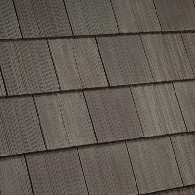 We install synthetic cedar shingles, giving you the rich, natural cedar shake appearance without the ongoing maintenance, rot risk, insect damage, or fire concerns that come with real wood.